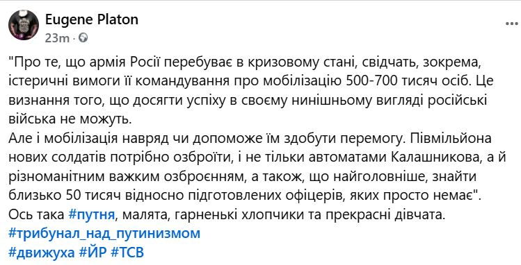 «Чим далі, тим менше у РФ ознак «держави» і більше ознак секти імені Путіна. Процес виродження в секту вже незворотний і знаходиться на завершальній стадії.
