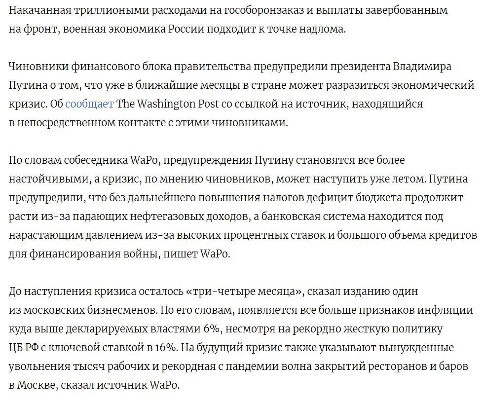 Путіна попередили про настання масштабної економічної кризи до літа: «Залишилося три-чотири місяці».