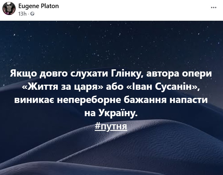 Так, за наказом Путіна, подібно Гітлеру, Росія прагне «остаточного вирішення українського питання» — знищення України як країни та українців як нації, але за нього «недорогі росіяни підвелися з колін» і пишаються своєю країною та її досягненнями.